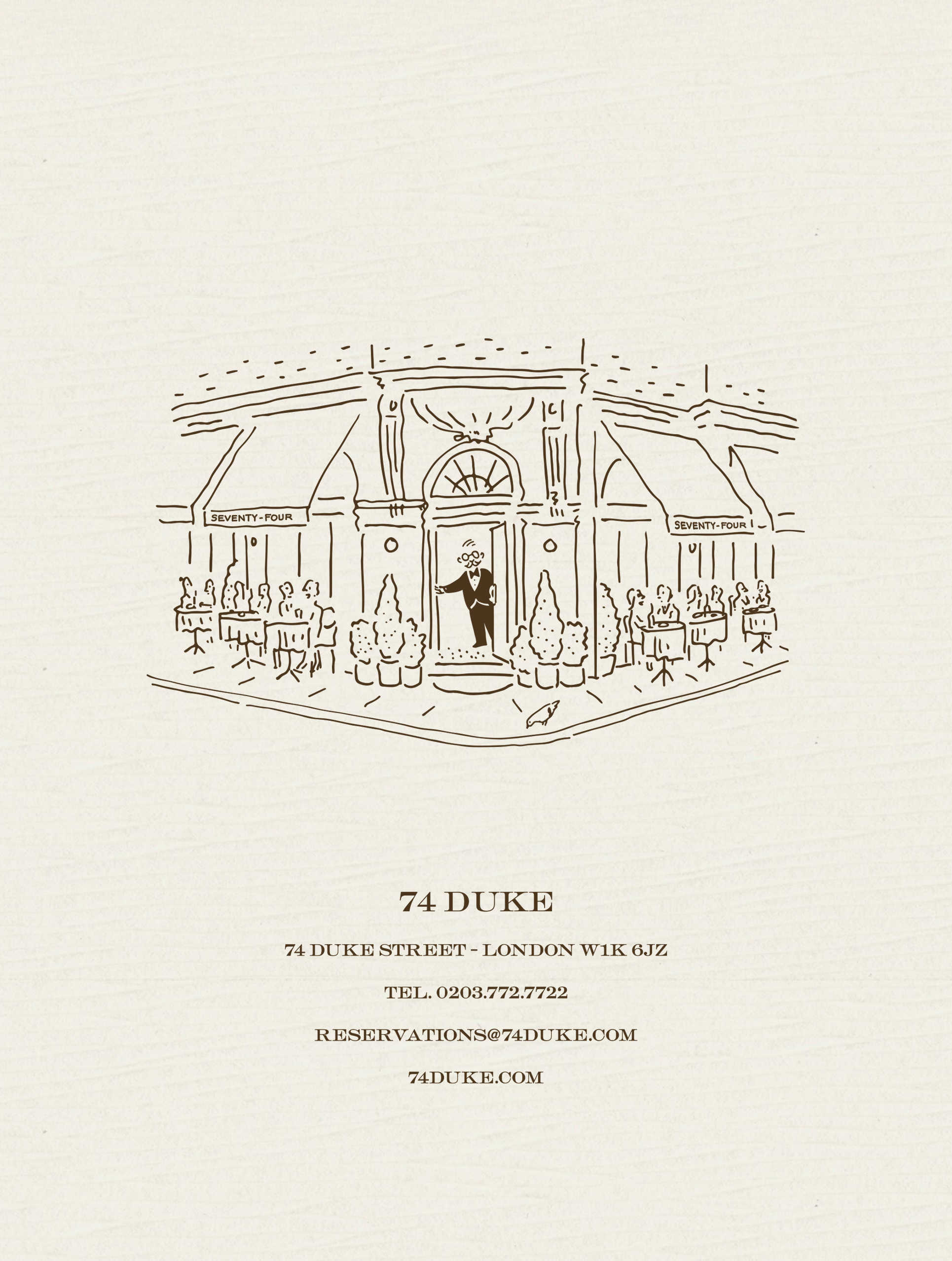 We conceived a Maître d’ and waiter as enduring brand characters—figures designed to embody the restaurant’s convivial spirit and anchor its identity.